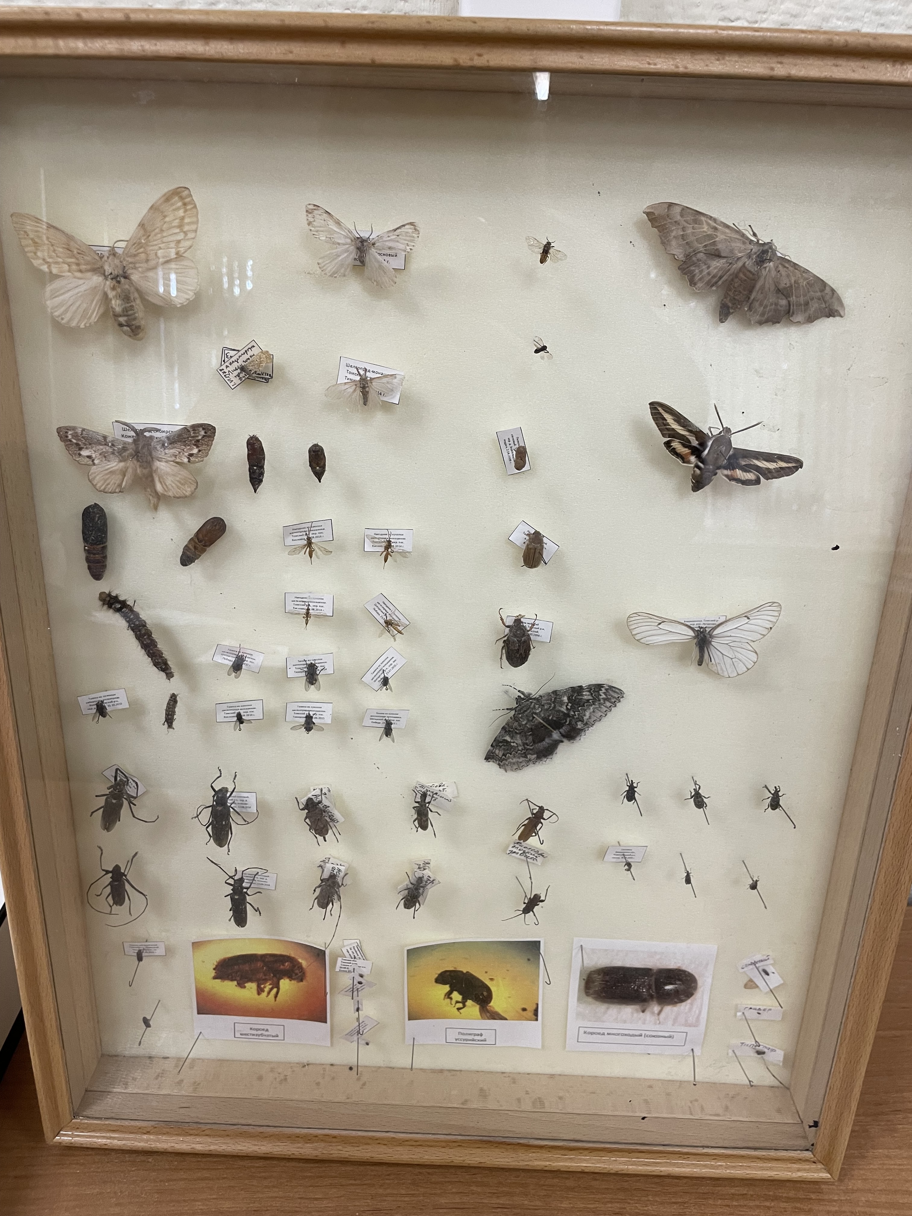 Благодаря наличию в филиале энтомологической коробки, ребятам посчастливилось собственными глазами увидеть личинки и бабочки таких вредителей, как сибирский шелкопряд, шелкопряд-монашенка, бражник сосновый.